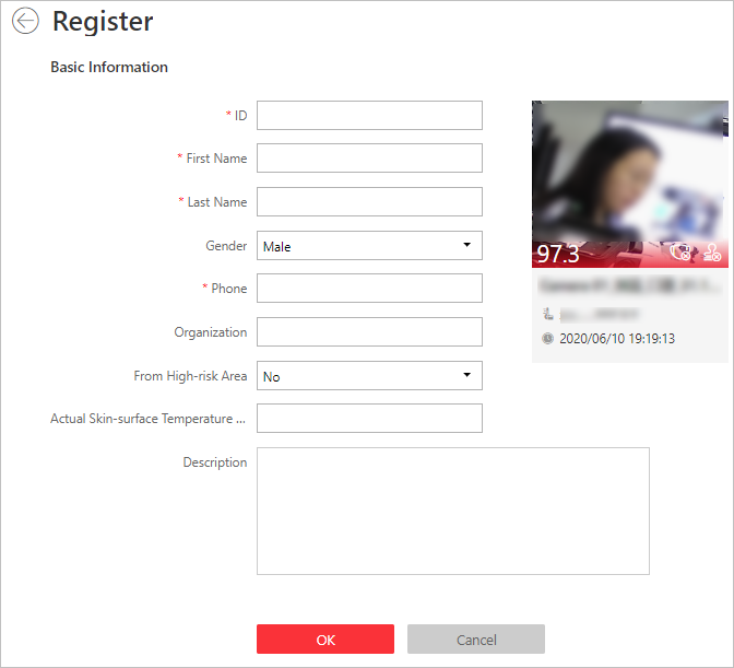 For unregistered persons displayed on real-time skin-surface temperature page or history page of skin-surface temperature, you can register for them.